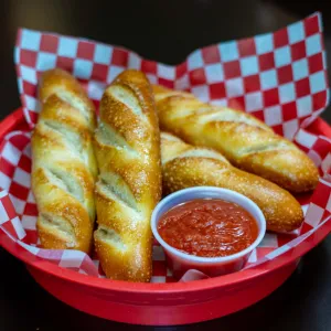 A light garlic oil and parmesan cheese brushed breadstick served with a marinara sauce.