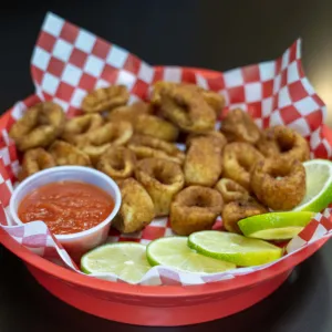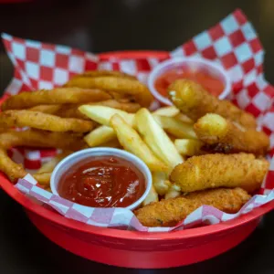 A combination of Mozzarella Sticks, Onion Rings, and Fries served with marinara sauce.